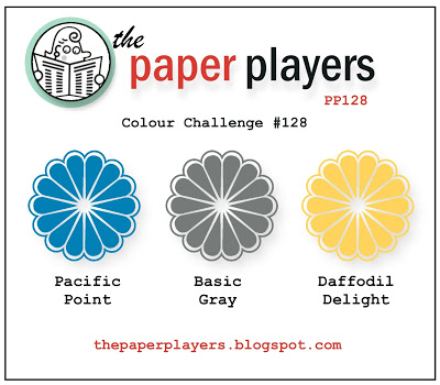 Cindy, this was a great choice of stamps for this color combo. Your ribbon really pops off the white background, and I love the rounded corners. Thanks for playing with The Paper Players this week!