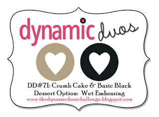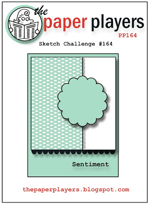 I used Sandy’s sketch from the Paper Players # 164 and the colors and wet embossing (for the flower) from Dynamic Duos # 71 to make this card. I decided on a Birthday card since that seems to be the one most people are asking me to make for them these days…