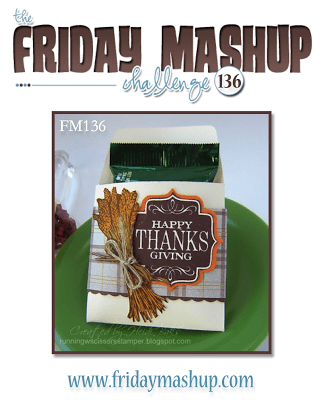You can never go wrong with the ever popular Post-It Note Holder- who doesn’t use these on a daily basis? I just received my luxurious Chevron Ribbon from the SU sale and put it to use. As I was rummaging through my buttons, I came across this perfect match (the photo does not do it justice) and tied it on my big bow. Add a simple sentiment to remind the recipient that you are thinking of them, and you have a cute little gift on hand when you need one! What are you going to do for the Friday Mashup this week? I can’t wait to see it!